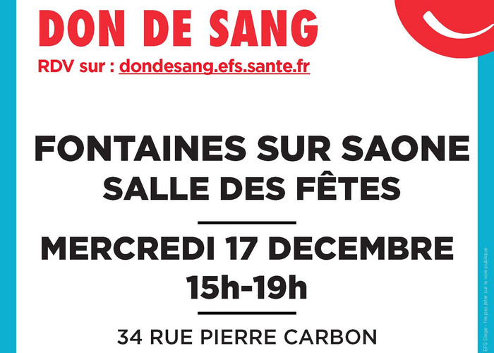 Le prochain rdv de don du sang aura lieu le 17 décembre de 15h à 19h à salle des fêtes…