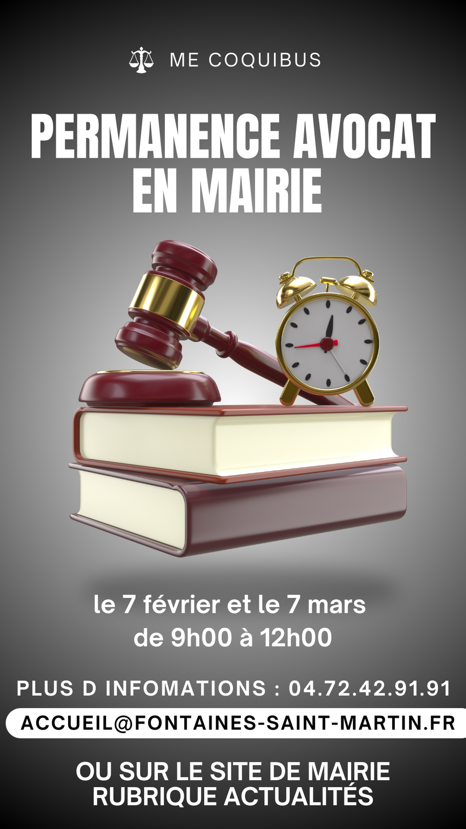 De 9h à 12h Sur RDV Prochaines permanences 7 mars et 7 avril Maître Coquibus vous reçoit gratuitement en mairie Ajouter à mon Calendrier (.ics) Le 07/03/2026 Retour