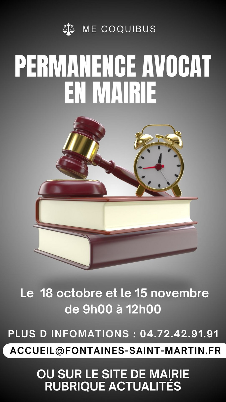 De 9h à 12h Sur RDV Maître Coquibus vous reçoit gratuitement en mairie Ajouter à mon Calendrier (.ics) Retour